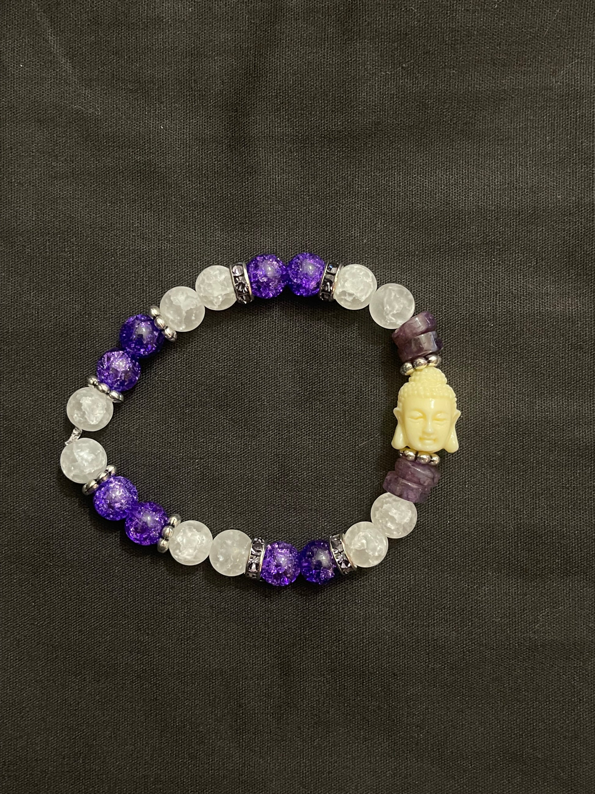 Purple quartz with crackle agate & dyed agate stone bracelet with white buddha stone