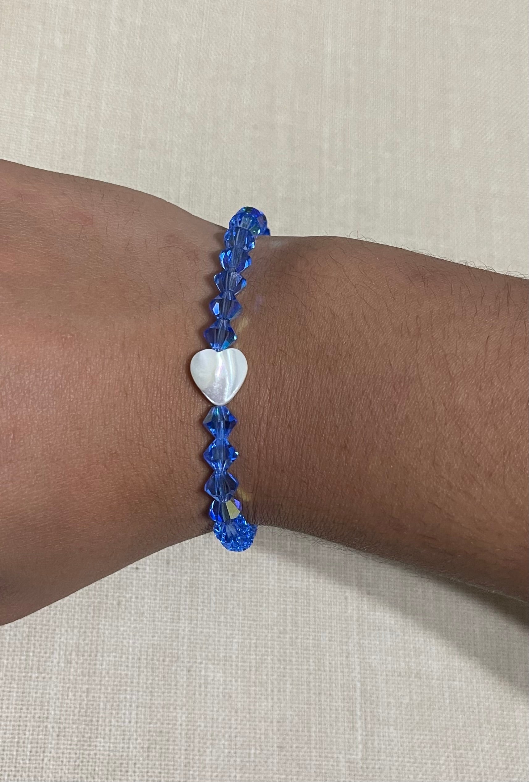 Sapphire czech crystals with shell heart stone