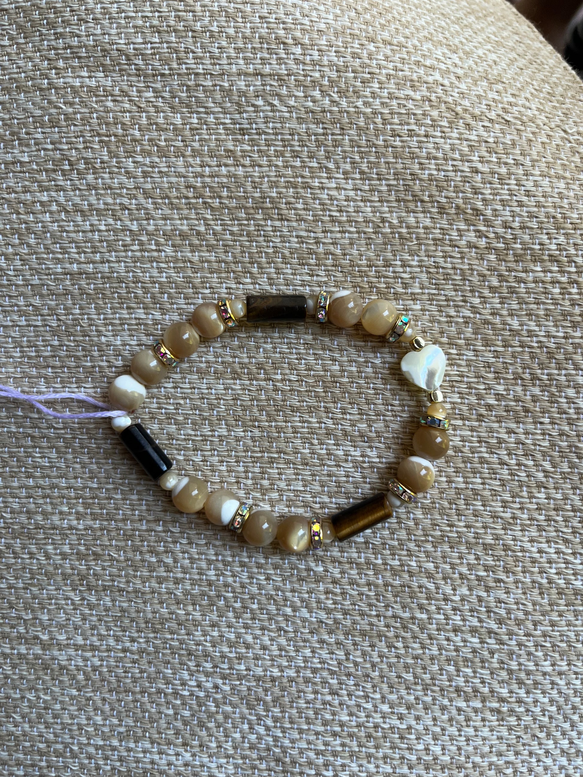 Tiger’s eye & pearl bracelet with shell heart